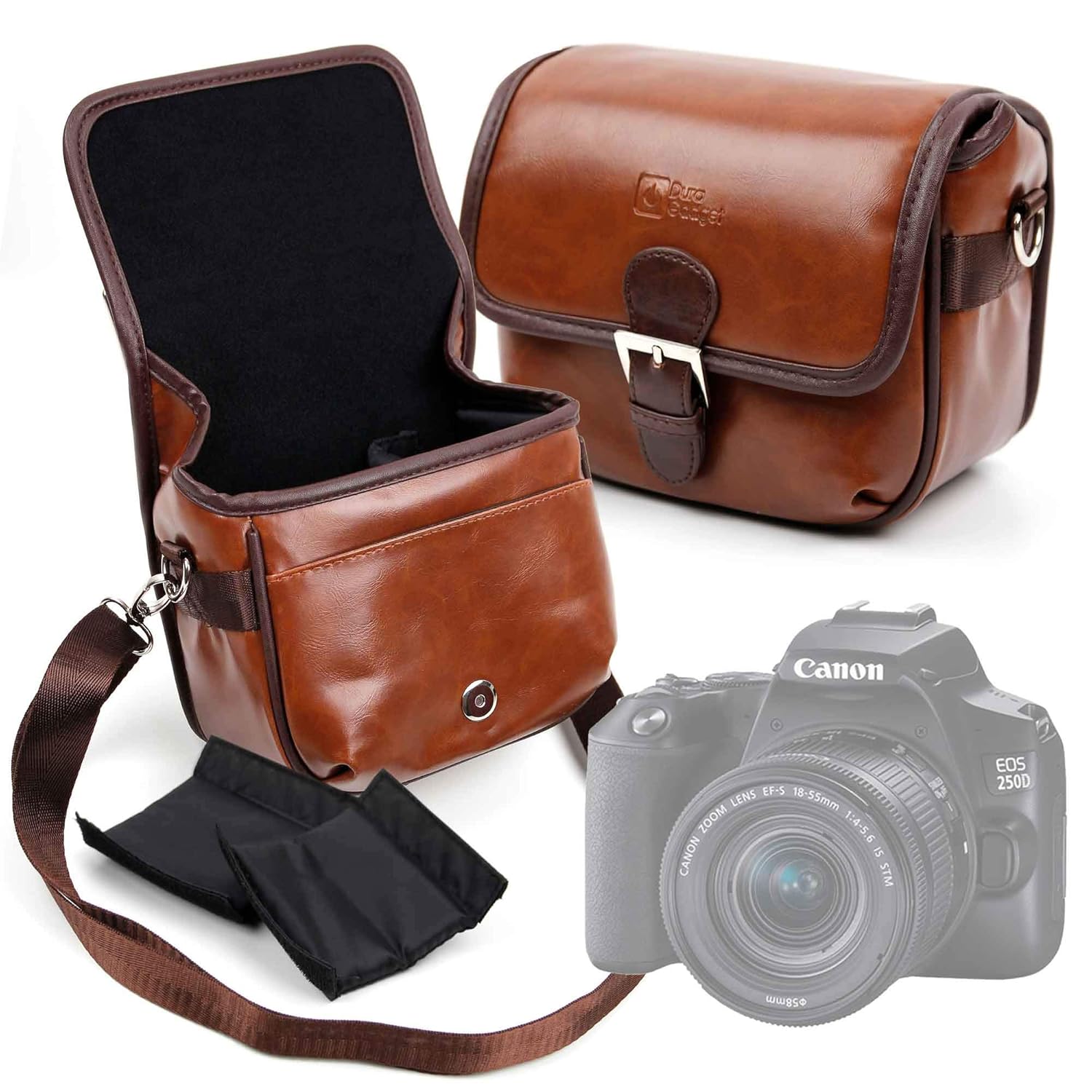 Para poder llevar a todas partes, la flamante Canon Eos 250D, disponemos de una amplia gama de bolsas de transporte. En este caso, es una bolsa ajustada que permite ir cómodamente a todos los sitios con tu cámara, a parte dispone de un compartimento y luce un acabado en cuero sintético, que queda muy bien y además a un precio muy asequible. Puede acceder a este enlace para ver más detalles. Más detalles